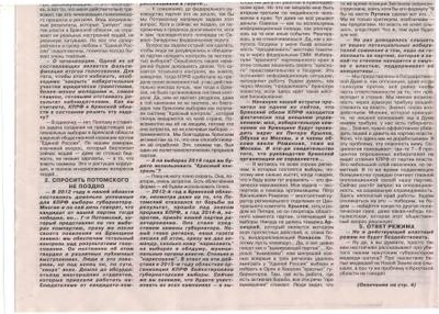 — На пресс-конференции вы говорили о том, что брянские СМИ почти не сообщают о деятельности коммунистов и назвали две возможные причины. Первая – журналисты хотят денег, вторая – представители КПРФ не хотят активно действовать, раскрываться. Я назову третью причину: журналистам просто запрещают пускать ваших активистов в эфир, на страницы печатных изданий. Также, как запрещают печатать в брянской типографии и продавать в киосках «Брянсксоюзпечати» неугодные издания…