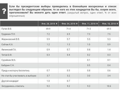 6. ВЦИОМ 22 февраля показал падение на 1 процент рейтинга Путина. Выпадение из содержательного информационного поля для президента также не проходит бесследно. Несмотря на массированную антигрудининскую кампанию в СМИ, ВЦИОМ фиксирует некоторый рост рейтинга Грудинина. Отставание Жириновского от Грудинина все более очевидно.