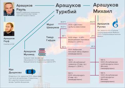 Напомним, что отец - советник гендиректора « межрегионгаза» Рауль Арашуков был арестован в офисе Газпрома в Питере, а сын-сенатор Рауф Арашуков прямо во время заседания Совета Федерации. Чуть позже был арестован двоюродный брат сенатора - гендиректор АО «Газпром газораспределение Астрахань» и ООО «Газпром межрегионгаз Астрахань» Руслан Арашуков, а также три крупных хозяйственных руководителя системы «Газпрома» в Ставропольском крае.