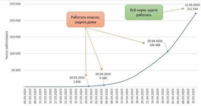 9. Единственный аргумент Кремля, оправдывающий шараханья в коронавирусной политике, может заключаться в статистических данных о крайне низкой смертности от COVID-19 в РФ. Хотя «гуляющие» на горизонтальном уровне слухи зачастую говорят об обратном. Трудно сказать, что будет в том случае, если данная статистика будет поставлена под сомнение на уровне массового сознания, А если после возобновления работы большинства предприятий пойдет «вал» новых заболеваний? Отметим, что в издании «FT» уже вышла активно распространяемая в социальных сетях статья о якобы занижении властями РФ числа умерших от заражения коронавирусом, на что обратил внимание, в частности, близкий к АП РФ канал «Незыгарь» (@russicatop));