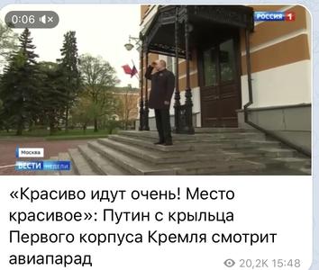 3. Все это несомненно будет сказываться на восприятия гражданами образа президента России, который на сей раз разительно отличался от «героического» образа, создаваемого на протяжении 20 лет. Одиночество Путина на кремлевском крылечке с ладошкой у глаз для обозрения самолетов или обозрение уже с другого крыльца марша «потешного» (в петровском смысле слова) кремлевского полка - явно на образ «военного вождя нации» не тянут. Тут на ум приходит другой образ: «хороший ты мужик, Иван Егорыч, но не орел!». И это образ явно разрушителен для рейтинга Путина. Понятно, что власти РФ, скорее всего, проведут военный парад 24 июня. Но «дорого яичко ко Христову дню», как гласит народная мудрость. Сакральная дата для миллионов, и это сформировано за десятилетия, - 9 мая, при всем уважении к сталинскому параду 24 июня 1945 года.