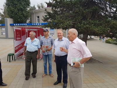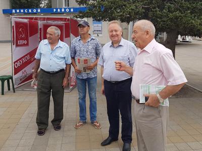 Затем депутат-коммунист отправился в станицу Динскую, где провел встречи с активом и посетил одну из агитационных точек – так называемый агитационный куб. В таких конструкциях осуществляется раздача агитационной продукции, в том числе и бюллетеня Динская правда. Сергей Павлович пообщался с жителями станицы, выслушал просьбы и наказы ему как депутату со стороны станичников.