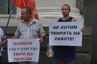 28 июня севастопольские коммунисты пришли к стенам Законодательного собрания с пикетом против повышения пенсионного возраста. Коммунисты держали в руках плакаты с лозунгами «Помоги государству — умри до пенсии», «Не хотим умирать на работе», «Пенсионная реформа — ограбление трудящихся», «Плати, работай, умирай — нужна ли нам такая стабильность?», «А почему не 90?», «У них — вся прибыль от природных ресурсов! У нас — двойные налоги и работа до смерти!», «Медведев! Как дожить до пенсии? Как прожить на пенсию?».