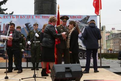 На трибуну поднялись почётные гости – ветераны партии, Великой Отечественной войны, афганцы: Соболев В.И. – председатель Общероссийского общественного движения в поддержку армии, Бестаев Х.Д. – ветеран боевых действий, Будайчиев А.Н. – первый секретарь Моздокского РК КПРФ, депутат, помощник депутата ГД – Тайсаева К.К., Хестанов А.А. – первый секретарь Промышленного РК КПРФ, начальник ЖКХ Правого берега.
