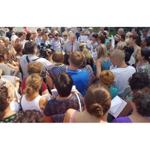 Депутат Обухов тут же на площади у мэрии провел прием граждан, где к нему по конкретным проблемам обратились десятки людей.