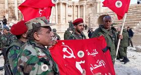 Во время штурма Пальмиры в передовые части сирийской армии передали красные знамена с советским гербом, сделанные наподобие знамени Победы, водруженного над Рейхстагом в 1945 году.