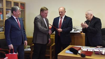 27 января в Москве в редакции народной газеты «Советская Россия» состоялась торжественная церемония вручения премии «Слово к народу» и дипломов «Советской России» за 2021 год. В церемонии принимали участие главный редактор газеты «Советская Россия» В.В. Чикин, Председатель ЦК КПРФ Г.А. Зюганов, заместитель Председателя ЦК КПРФ Д.Г. Новиков, секретарь ЦК КПРФ А.А. Ющенко.