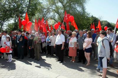 Сотни людей всех поколений, собравшиеся на площади Победы, горячо приветствовали друг друга и поздравляли с праздником. Самодеятельный ансамбль «Красная заря» исполнял песни военных лет, которым собравшиеся с воодушевлением подпевали. Реяли красные флаги СССР, КПРФ и СКМ, флаги – копии Знамени Победы.