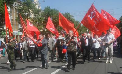 Развернув красные знамёна, колонна двинулась по проспекту Революции. Впереди – ветераны Великой Отечественной войны, активисты Союза советских офицеров в парадной форме. "Да здравствует 68-ая годовщина Победы советского народа в Великой Отечественной войне!", "Слава Красной Армии!" "Слава Ленину!", "Слава Сталину!" "Слава Коммунистической партии!", «Да здравствуют ветераны Великой Отечественной войны!» «Слава советскому народу-победителю!» - на эти призывы колонна отвечала дружным «Ура!». Множество воронежцев, заполнявших проспект, самодеятельные и профессиональные артисты, выступавшие на сценических площадках, встречали шествие коммунистов улыбками и словами приветствия, фотографировали происходящее, охотно разбирали номера "Правды" и "За возрождение".