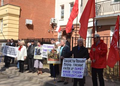 18 апреля у представительства дипмиссии Польской Республики в Смоленске состоялся организованный областным и городским комитетами КПРФ пикет против уничтожения памятников советским воинам в этой стране.