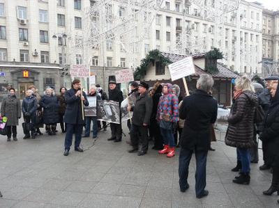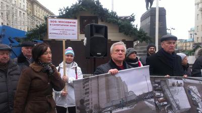 Напротив здания мэрии Москвы депутаты-коммунисты встретились с москвичами, протестующими против незаконного строительства «Пятерочки» и стоматологии в районе Выхино-Жулебино.