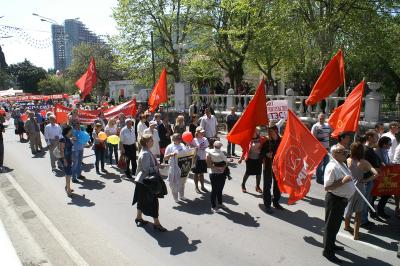 1 мая в Сочи выдался погожий, солнечный день. Первомайский митинг в Сочи, организованный горкомом КПРФ, в этом году пополнился активистами микрорайона Кудепста, активно выступающими против строительства на селитебной курортной территории крупнейшей в мире газопоршневой ТЭС.