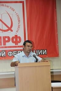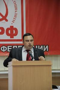 С докладом "Об итогах работы XVII съезда партии и первоочередных задачах Крымского республиканского отделения по изучению материалов и пропаганды решений Съезда КПРФ" выступил член Центрального комитета КПРФ, первый секретарь Крымского рескома КПРФ Сергей Васильевич Богатыренко.
