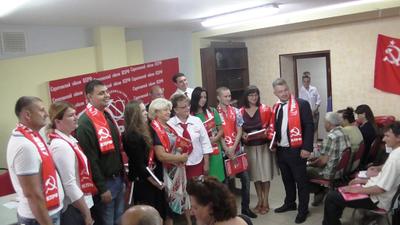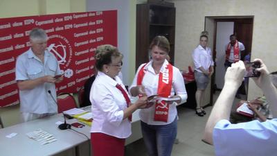 Конференция началась с приятных моментов: новобранцам Компартии первый секретарь Саратовского обкома КПРФ, зампред Саратовской облдумы О. Н. Алимова вручила партийные билеты, а затем поздравила с юбилеями товарищей по партии, вручив им памятные подарки.