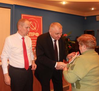 Затем, по сложившейся традиции, А.А. Пономарёв и первый секретарь Ивановского обкома партии В.В. Кленов торжественно вручили большой группе молодёжи комсомольские и партийные билеты, а ветеранам областной организации – награды ЦК КПРФ.