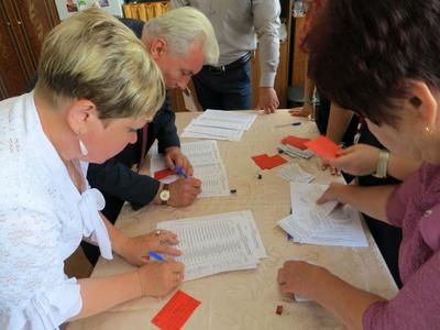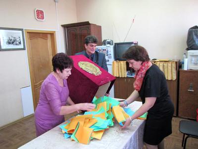 Затем слово взял председатель счётной комиссии конференции В.В. Кирьяков, который представил делегатам для утверждения образцы бюллетеней и объяснил процедуру и порядок проведения тайного голосования.