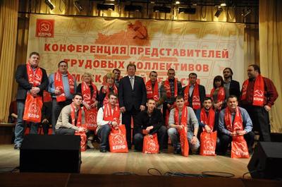 Также участники Конференции избрали делегатов на всероссийскую Конференцию представителей трудовых коллективов России. Первые два делегатских мандата участники Конференции единодушно вручили лидеру КПРФ Геннадию Андреевичу Зюганову и зам. председателя ЦК КПРФ В.И. Кашину. Также Подмосковье на съезде будут представлять руководители предприятий, фермеры, ученые, строители, предприниматели.