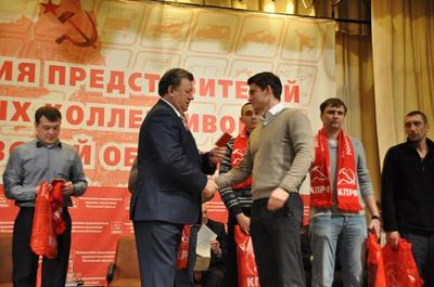 Завершилась торжественная часть вручением партийных билетов новым членам партии заместителем Председателя ЦК КПРФ Владимиром Кашиным.