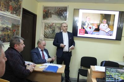 Секретарь окружкома по идеологии Шепелев А.С. рассказал о работе по патриотическому воспитанию молодежи. Вместе с ветеранами города коммунисты, комсомольцы в течение четырех месяцев проводили тематические классные часы в школах города, с примерами истории сражений Великой Отечественной войны, освоения Космоса, событий Октябрьской революции. По мнению Шепелева А.С, работа с будущим избирателем важна именно сейчас, в преддверии следующих выборов.