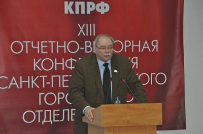 20 декабря 2014 года состоялась XIII отчетно-выборная конференция Санкт-Петербургского городского отделения КПРФ. В работе конференции принял участие заместитель Председателя ЦК КПРФ В.Ф. Рашкин.