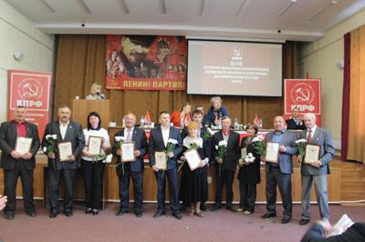 Перед началом работы Конференции в торжественной обстановке были удостоены наград ветеран партии Л.Г.Малахов и ветеран партии, председатель краевой КРК Т.А.Мечтаева. Почётными грамотами за отличную партийную работу были награждены коммунисты Пермского края, а затем получили партийные билеты молодые коммунисты.