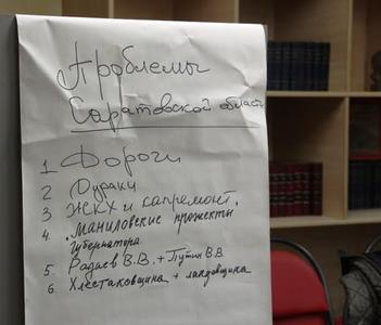В ходе пресс-конференции проводился сбор мнений журналистов по списку проблем Саратовской области для «челобитной» к губернатору.