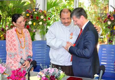 По поручению Г.А. Зюганова от имени Совета СКП-КПСС и Центрального Комитета КПРФ Д.Г. Новиков вручил Даниэлю Ортеге партийный орден Дружбы народов. Эта награда явилась знаком солидарности с Никарагуа и признательности команданте за его личный вклад в укрепление дружбы между нашими народами.