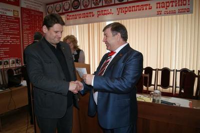 25 октября состоялся очередной, II пленум Красноярского крайкома КПРФ. Перед началом работы по традиции молодым коммунистам были вручены партийные билеты, а победителям социалистического соревнования среди местных отделений КПРФ – почетные грамоты крайкома КПРФ и денежные премии. Партийные билеты и награды вручал первый секретарь крайкома партии П. П. Медведев.