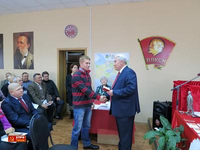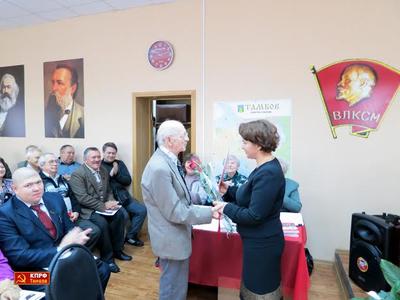 Началось заседание с торжественной минуты - вручались партийные билеты вступившим в ряды КПРФ молодым людям из Пичаевского и Октябрьского районов. Ряд товарищей, являющихся детьми войны, были награждены памятной медалью в честь 70-летия Победы в Великой Отечественной войне 1941-1945 годов.