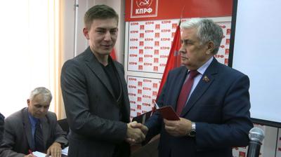 Сначала первый секретарь Чувашского рескома КПРФ, депутат Государственной Думы РФ В.С. Шурчанов вручил партийные билеты молодому пополнению. В партию вступили пятеро молодых людей. Памятную медаль «150 лет со дня рождения В.И. Ленина» Валентин Сергеевич вручил члену бюро рескома, первому секретарю Чебоксарского райкома КПРФ М.В. Козлову.