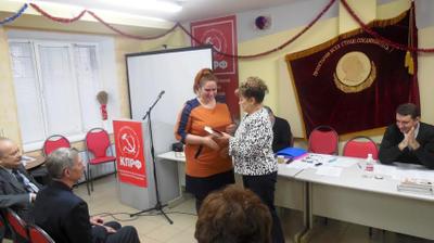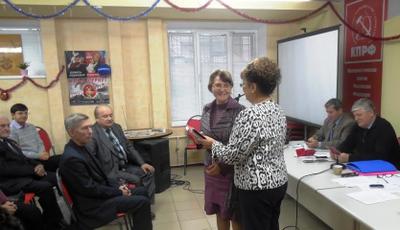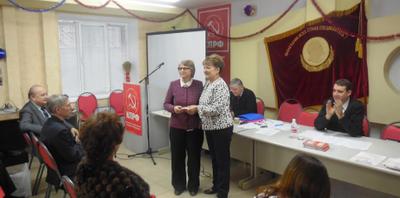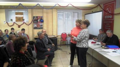 На совещании были подведены итоги работы местных отделений КПРФ в 2015 году. О.Н. Алимова вручила победителям Почетные грамоты обкома КПРФ и ценные подарки.