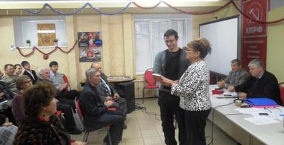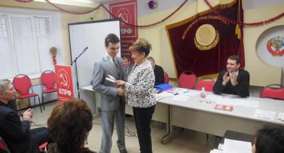 Перед началом мероприятия в торжественной обстановке О.Н. Алимова вручила членские билеты коммунистам и комсомольцам.