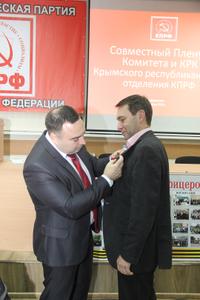 После открытия Пленума первый секретарь комитета Сергей Богатыренко вручил юбилейные медали «100 лет Великой Октябрьской социалистической революции» министру экологии и природных ресурсов Республики Крым Геннадию Нараеву, заместителю председателя Счетной палаты Республики Крым Алексею Тихомирову, первому секретарю Ялтинского городского отделения КПРФ Ивану Павличенко и первому секретарю Симферопольского городского отделения КПРФ Степану Кискину.