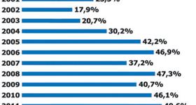 И опять, что называется, нашего «Остапа понесло» – придется специально для него поместить диаграмму о доле нефтегазовых доходов в бюджете России за 2000–2015 гг., откуда видно, что никто не сделал больше для превращения России в сырьевой придаток Запада, чем тандем Путин–Медведев. Так что действительно, за 15 лет нельзя изменить структуру экономики страны, особенно если делаешь всё наоборот: ежегодно изо всех сил закрепляешь за страной статус нефтегазового раба Запада. И если в 2015 году доля нефтегазовых доходов в бюджете России немного и уменьшилась, то, увы, исключительно из-за резкого падения цены на нефть.