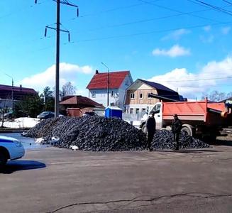 А чтобы заглушить речи выступающих, на протяжении всего мероприятия создавались шумовые помехи: с одной стороны рабочие долбили асфальт перфоратором, с другой - прямо через забор от трибуны - бензопилами распиливали брёвна.