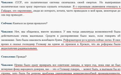 Еще не давно протоиерей Чаплин эпатировал заявлением, что моральным долгом каждого христианина в 20-е годы было уничтожение как можно большего числа большевиков. Дальше последовал призыв проверить книги Ленина и др. лидеров большевиков (значит, и Сталина тоже) на экстремизм... И вот – на тебе. Приплыл к «сталинистам». Он теперь за «Сталинград», и за признание «определенного количества полезных дел для страны», что свершил Сталин. И вот уже некоторые наши молодые товарищи церковного либерала Чаплина принимают с распростёртыми объятиями в ряды идейных патриотов-государственников...