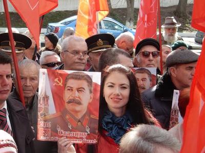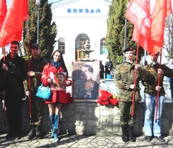 На привокзальной площади звучали стихи и песни. Так заслуженный артист Крыма, преданный коммунист Сергей Курочкин спел свой бессмертный хит «Верните Сталина!», а первый секретарь Нахимовского райкома КПРФ О.В. Кальницкая прочитала стихотворение Александра Харчикова.