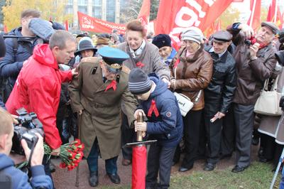 «Что сделала революция? Прежде всего, она покончила с позорной эксплуатацией человека человеком, она установила народовластие в форме Республики Советов. И сегодня, мы, прямые наследники Великого Октября, должны сохранить его завоевания и донести их до потомков», - обратился к митингующим руководитель фракции КПРФ Волгоградской областной Думы, секретарь областного комитета КПРФ Алексей Никитич Буров.