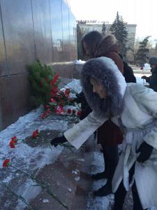 Участники памятной акции возложили цветы к подножию памятника Владимиру Ильичу Ленину, чуть позже - к постаменту в сквере напротив администрации Волгоградской области.