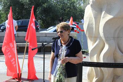 С приветственным словом обратилась депутат Госдумы РФ Алевтина Апарина. «23 августа - это день скорби и памяти. Мы, коммунисты, ежегодно выражаем слова благодарности тем, кто отдал за нас свои жизни. Светлая память погибшим, слава тем, кто выстоял, спасибо, кто подарил нам свободу», - сказала депутат.