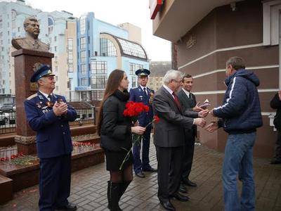 Перед вручением партийных билетов к подножию памятника была возложена корзина цветов. Это почетная миссия была поручена депутату Липецкого Горсовета, подполковнику запаса А.В. Печерскому и коммунисту, подполковнику запаса И.Н. Леонову.