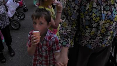 Потом все пели, водили хороводы, рассказывали стихи. Самое сладкое, как водится, в конце – угощение мороженым.