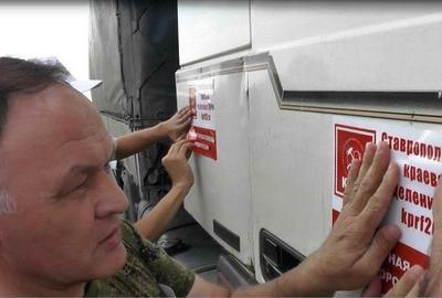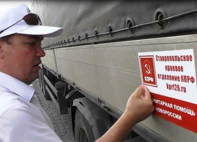 Во вторник, 18 августа, в Донецкую и Луганскую республики из Ставрополя отправились машины с мукой, продуктами питания и строительными материалами, украшенные символикой КПРФ.