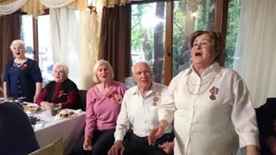 Среди награждённых в этот день были не только персонально активисты, но и коллектив хора ветеранов города Ставрополя. В.И. Гончаров вручил его руководителю Почётную грамоту от центрального руководства ООО «Дети войны» за подписью Н.В. Арефьева. После окончания церемонии награждения именно солистки хора выступили инициаторами исполнения песен Великой Отечественной войны всеми без исключения участниками мероприятия.