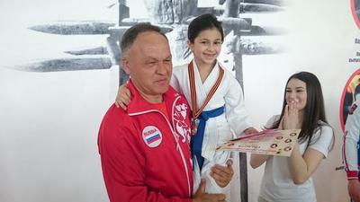 На этом подарки не закончились. Из рук В.И. Гончарова получила форму сборной Ставропольского края судья, мастер спорта по рукопашному бою Оксана Таймасханова из Будённовска.