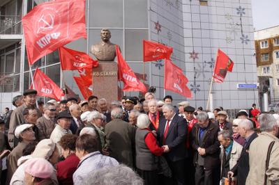 После упорных боев 8 мая 2010 года памятник должны были установить в районе ДОСААФ, но в ночь с 7 по 8 мая по указке городской власти, лично господина Заболева, не без помощи милиции и прокуратуры мероприятие сорвали. Но массовый мощный митинг в защиту Иосифа Виссарионовича тогда все же состоялся. В отместку председатель Совета ветеранов Будимир СЛЕПЦОВ, видимо, начал запугивать ветеранов, выступившим на том митинге, что некоторые, боясь за судьбы своих высокопоставленных детей и внуков, стали отказываться от своих слов, которые тогда опубликовала наша газета «Коммунист». Сколько угроз в свой адрес тогда услышали партийные газетчики!