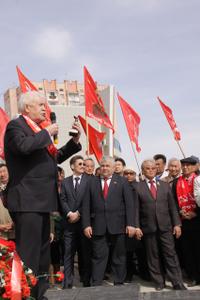 Секретарь ЦК КПРФ, первый заместитель председателя Совета СКП-КПСС, первый секретарь Северо-Осетинского рескома КПРФ, депутат Государственной Думы РФ Казбек ТАЙСАЕВ выразил глубокую благодарность от имени ЦК КПРФ, лично Геннадия ЗЮГАНОВА, Ивана МЕЛЬНИКОВА, Владимира КАШИНА, коммунистов Северной и Южной Осетии, всего Северного Кавказа за мужественный шаг — установление памятника Сталину. Сегодня все средства массовой информации освещают данное событие. Либеральные СМИ уже подняли шумиху: зачем надо было ставить памятник Сталину в Якутии?