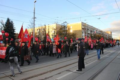 Во вторник, 7 ноября, калининградские коммунисты провели демонстрацию и митинг, посвященные столетнему юбилею Великого Октября.