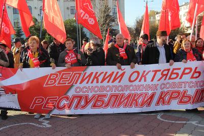 Начались мероприятия с традиционного праздничного шествия по главным улицам столицы. Коммунисты и сторонники со всех районов и городов Республики Крым приехали в Симферополь, чтобы встретить великую дату, изменившую мировую историю и жизнь простых людей. В праздновании великого события приняли участие несколько тысяч человек. Из-за массовости шествия властям пришлось частично перекрыть движение по центральной улице города – проспекту Кирова.