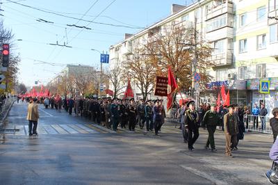 Под звуки оркестра колонна демонстрантов проследовала от парка им.Тренёва до памятника вождю мирового пролетариата, скандируя: «Ленин-Октябрь-Победа!», «Вернем социальные завоевания Октября!», «Великому Октябрю – Слава!». В ответ звучало дружное и громкое: «Ура!»